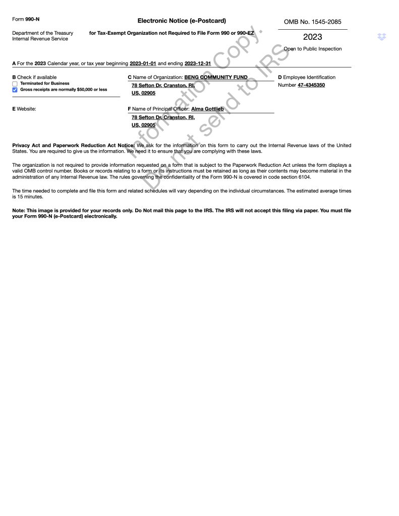• Letter from the U.S. Internal Revenue Service (IRS) attesting to the non-profit (501 [c] [3]) status of the BCF
